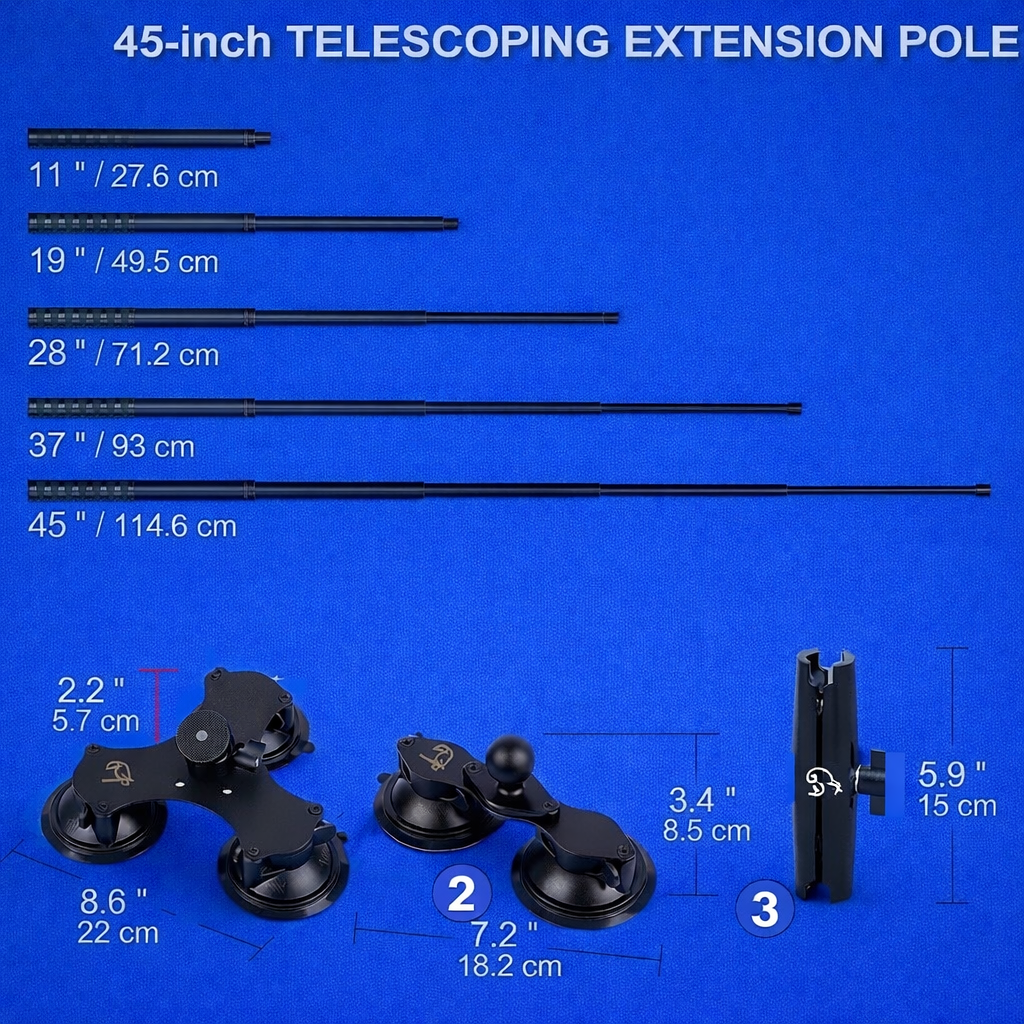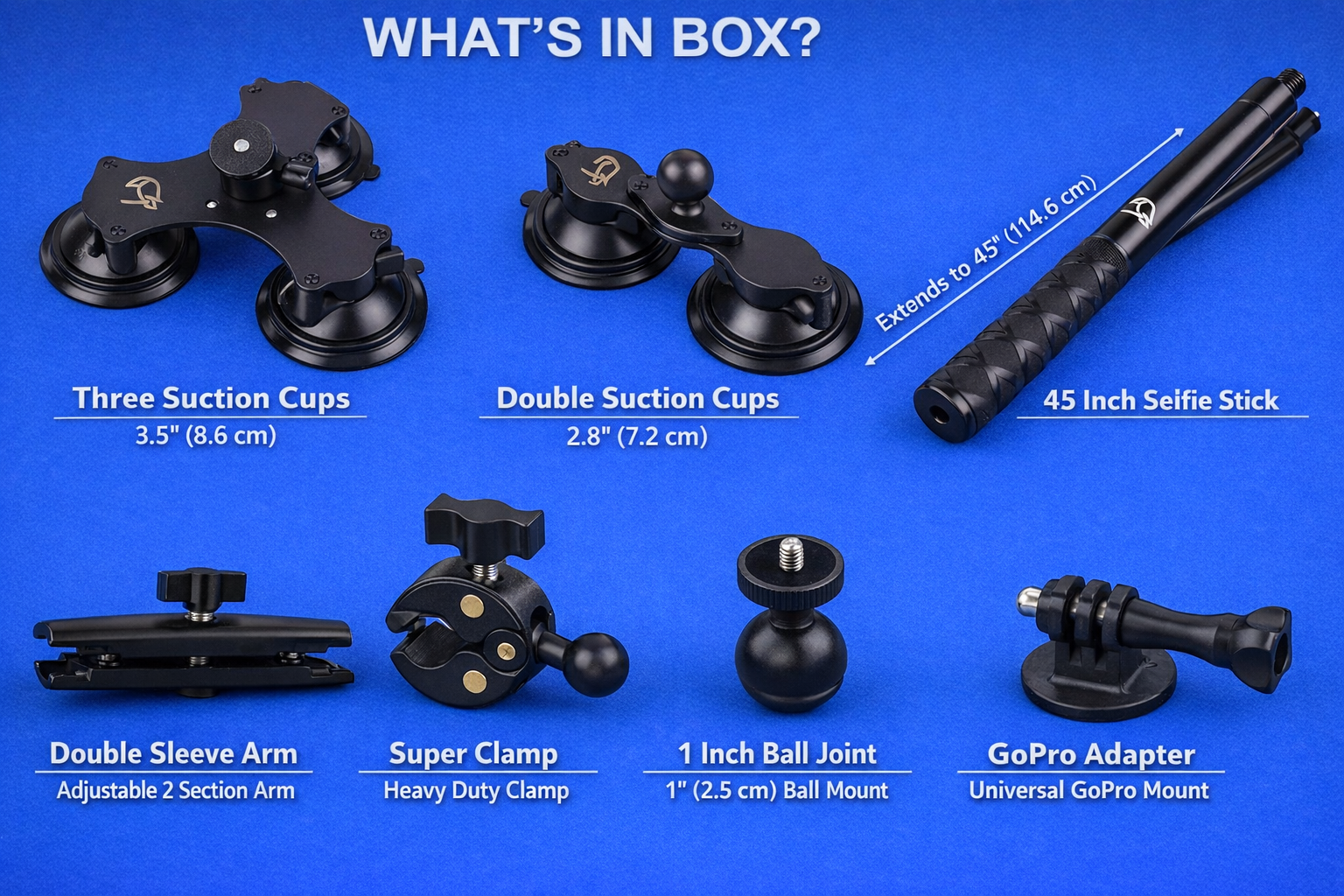 5 pint suction cup system, for perfect stabilization and stability at high speeds!. World leading design built to last.